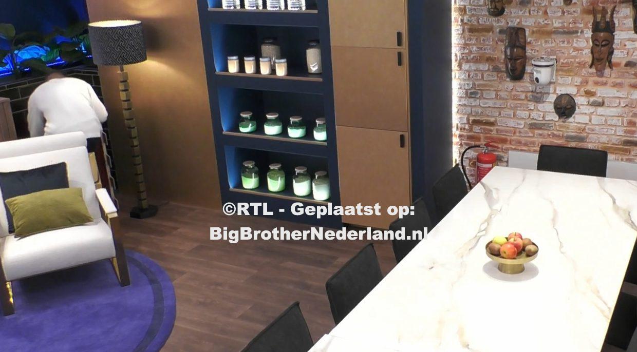 Dan kijken we maar even naar de Big Brother uitzending van vandaag. Gisteren tijdens de start op tv werd duidelijk dat Kristof een geheime bewoner was met een secret mission. Inmiddels weten we dat Kristof al in het huis is maar niet wat zijn missie precies was… Big Brother spreekt Kristof toe in de dagboekkamer. De andere bewoners hebben geld verdiend met een allereerste “hunger game”. En jij bent diegene die met dit bedrag mag gaan shoppen. Je koopt je spullen in de Big Brother mini mall. Denk dadelijk goed na wat je koopt. Om de geheime ingang van de winkel te openen moet je dadelijk volledig door de rode gang heen. En in de keuken vind je dan maskers aan de muur. Je wrijft drie keer van boven naar beneden over de hoorns van het meest rechtse masker. Als je dat goed doet gaat de geheime ingang open. Die wijst zich vanzelf. De opdracht is geslaagd zodra jij de mini mall binnen gekomen bent. Als de deuren van de dagboekkamer open gaan dan start jouw secret mission. Kristof gaat de dagboekkamer uit en doet wat Big Brother hem heeft opgedragen. Hij doet dit zo zachtjes mogelijk omdat de rest van de groep dan nog slaapt. Zodra hij over de hoorns van het masker gewreven heeft gaat er bij de keukentafel in de hoek een deurtje open. Kristof stapt hierin en komt uiteindelijk in de mini mall uit. Wow ziek stamelt Kristof. Daar leest hij het kaartje waarop staat dat hij zijn secret mission behaald heeft. Hier doen jullie vanaf nu de aanvullende boodschappen leest hij verder voor. Aan de kassa zie je hoeveel geld er verdiend is na de hunger games van deze week. Voor het behalen van jouw secret mission komt er nog 15 euro bij. Doe deze nu in de “money money box”. Je mag nu boodschappen doen, alles is verdeeld over basis, medium en luxe producten. Je mag het naar eigen wens uitgeven. Als Kristof klaar is mag hij de mini mall weer verlaten door het luik en wordt er geopperd dat hij een ontbijt kan maken voor zijn mede bewoners. Kristof gaat ermee aan de gang. Daarna gaat hij terug naar de woonkamer, hij komt daar Nouchine tegen. En uiteindelijk de rest van de bewoners. Kristof staat ondertussen een ontbijtje te maken.