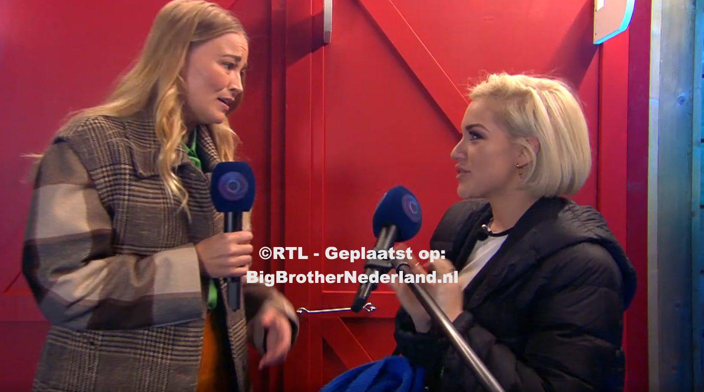Presentator Peter legt dan contact met het huis. Hij richt zich op Amy dat ze veel moest huilen. Je leek onzeker, hoe komt dat? Amy zou dat ook willen weten maar het was moeilijk. Ik legde de druk teveel op mijzelf en wilde erbij horen. Ik heb wel het gevoel dat het veel meer verbeterd is. Geraldine zegt tegen Eveline dat het erop lijkt dat ze uit de groep valt. Ik kijk wat meer de kat uit de boom legt Eveline uit. Zo ben ik, soms ben ik op de voorgrond en soms niet. Leroy denkt dat hij zichzelf is en weinig kansen heeft gehad echt iets van hem te kunnen laten zien. Zes dagen is erg kort benadrukt hij. Peter vertelt dat alle bewoners drie mensen moest nomineren. Dat er nog gestemd kan worden. Daarna zien we nog wat van het korte feestje in het Big Brother huis. Na de reclame vertelt Peter dat ze de tussenstand binnenkort bekend maken en dat ze op dat moment ook vertellen welke bewoner mag blijven in het huis. Presentator Peter gaat dan weer naar het huis en richt zich op Nawel. Wat vond je van de nieuwe bewoners. Nawel vond er niet zo heel veel van maar die drie mensen zijn wel veel voor mij gaan betekenen. Presentator Peter maakt duidelijk dat het om de nieuwe gaat en niet de genomineerden. Nawel verontschuldigd zich, ze laat weten wat in de war te zijn vanavond. Geraldine vertelt daarna dat ze over 10 minuten bekend maken welke bewoner sowieso mag blijven. Vervolgens zien we weer wat fragmenten van afgelopen week. Zoals Tobias en Grace die leuke momenten met elkaar hebben, een goede klik. En dat dit met Amy en Leroy ook zo lijkt te zijn.