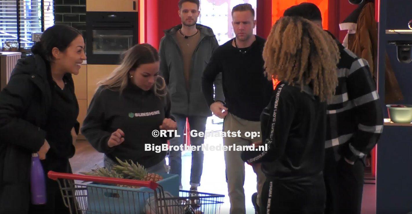 Grace is little brother en daar hoort de taak bij om boodschappen te doen. Zojuist is ze in de mini mall geweest en komt met een vrij vol winkelwagentje terug. En laat ook weten dat ze geprobeerd heeft te onderhandelen met Big Brother. Trots laat ze de goederen zien die ze gekocht heeft. Ze heeft onder andere salami, honing, ananas, koffie, kip, rozijnen, uitjes, aardbeien, mais, gember gekocht. De groep klapt en zijn blij met de producten. Er stonden ook nog spruitjes, drank, frisdrank, luxe ontbijt een extra stem. En een mystery box maar daar heb ik wel heel erg aan getwijfeld voegt ze eraan toe. Maar ik dacht ik ga puur voor eten, de kijkers beslissen uiteindelijk toch.