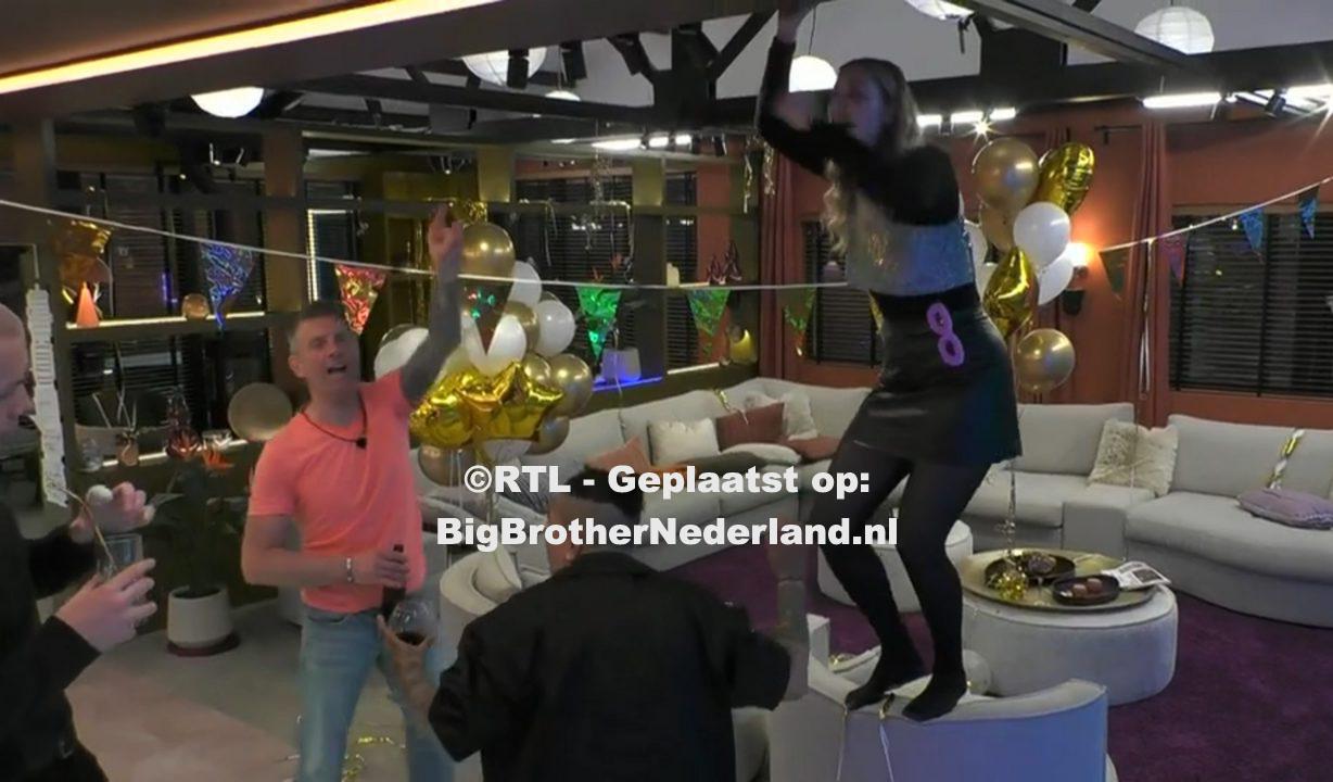 Nog wat later worden de bewoners naar de gameroom geroepen. Wat er daar gebeurd is niet duidelijk. In het huis komen een aantal oud bewoners de boel versieren. Judy, Chelsea en Charon hangen slingers, ballonnen op. Maar ook hebben ze drankjes bij en lekkere hapjes. Uiteindelijk verlaten ze het huis weer. Als de bewoners terugkomen is het tijd voor een klein feestje waar ze van genieten. Inmiddels is de nieuwe dag aangebroken. Wat gaat er in deze laatste week allemaal gebeuren? Morgen zal in ieder geval één bewoner het huis moeten verlaten. Je kunt nog altijd stemmen wie jouw favoriet is. Diegene met het minst aantal stemmen zal het huis morgen moeten verlaten.