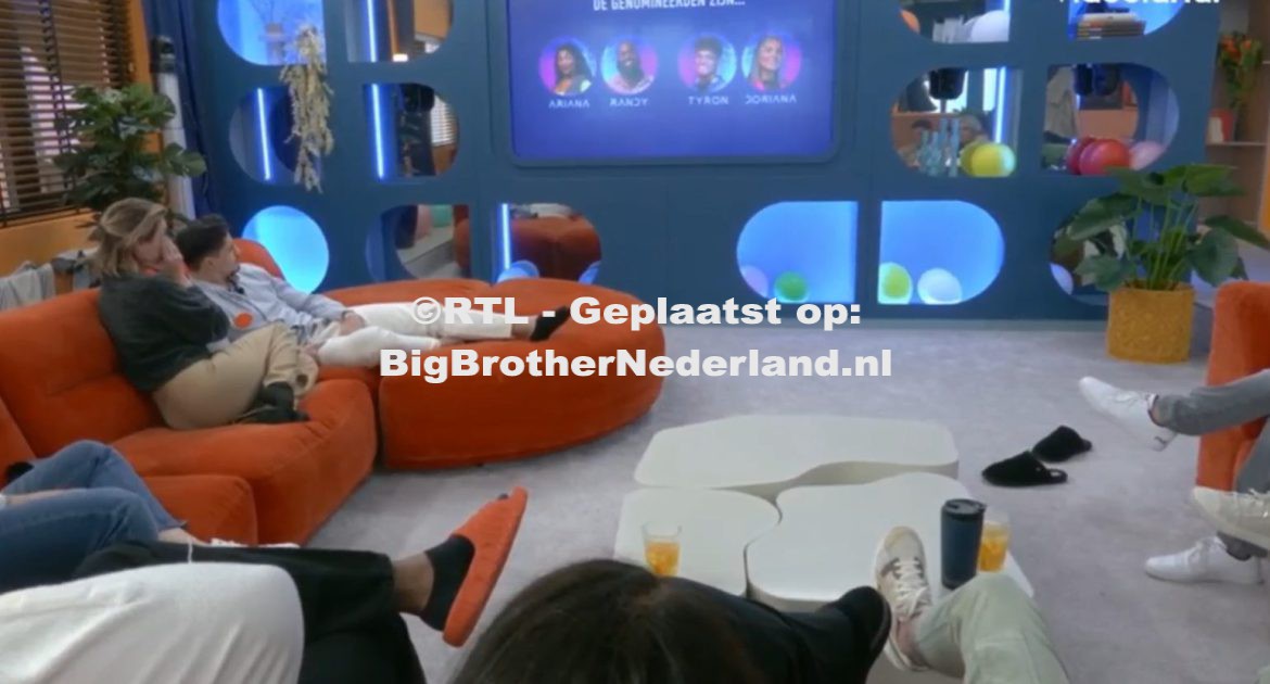 Big Brother laat weten dat iedereen naar de woonkamer moet komen. Er klinkt een spannend muziekje, de nominaties zijn bekend. Het eerste genomineerde duo is: Ariana & Randy. Het tweede duo wat genomineerd is zijn Tyron en Doriana. Ik zei het toch zegt Tyron met een glimlach tegen Doriana. Daarna geven de bewoners elkaar een knuffel en wensen de genomineerden van deze week veel succes.