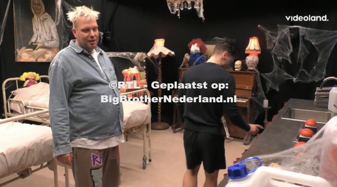 Het leek even of ze in slaap gingen vallen maar rond 00:30 uur stapten zij door de geheime deur naar de geheime kamer. Ook hier is het helemaal versiert in Halloween thema. Het is ons gelukt zegt Dilano blij. De twee kijken rond, er liggen kostuums, maskers en andere attributen. Op het aanrecht staan ook rode knoppen met de tekst afblijven. Uiteindelijk gaan de twee lekker slapen. Big Brother meld zich niet meer, dit zal op de nieuwe dag vast en zeker gebeuren.