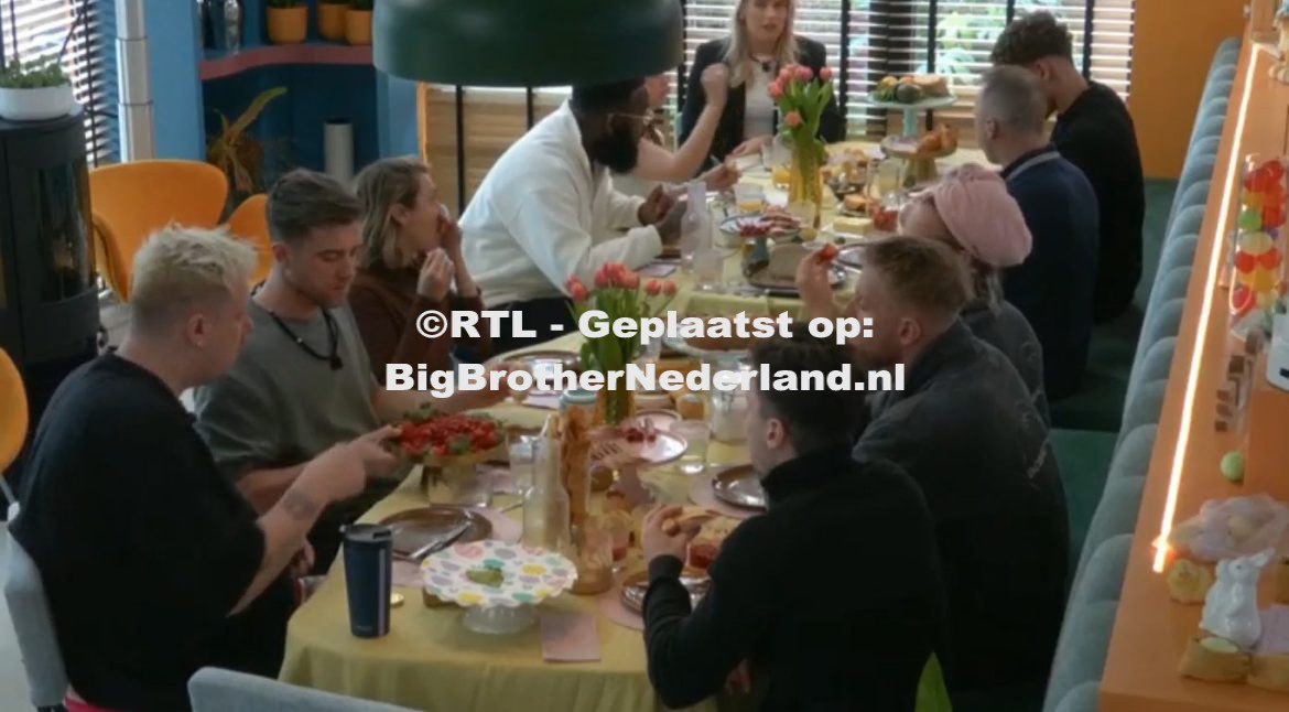 Eerder hadden Jimmy en Dilano een secret mission. De twee moesten tijdens Halloween ongezien het huis verlaten. Dat is de twee gelukt. Vandaag, na de nominatie uitslag neemt Big Brother het woord. Bewoners, Jimmy en Dilano hebben hun secret mission gehaald. En dus trakteren zij op een heerlijke paasbrunch. Alles voor de brunch staat in de voorraadkamer. Vrolijk Pasen. De bewoners gaan enthousiast naar de voorraadkamer en vinden daar lekker eten voor de brunch. Ze zijn er erg blij mee en genieten ervan.