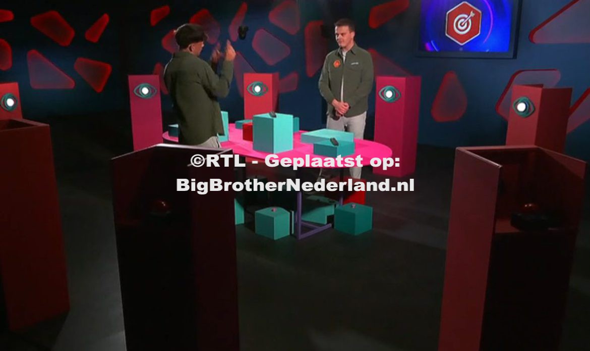 De bewoners gaan wederom in overleg. Jeffrey vraagt zich af of het individueel is, dat weten we niet antwoordt Elsa. De tijd tikt voorbij. Big Brother laat weten dat hij laat zien wie er op de knop gedrukt heeft. Als je gedrukt hebt zal je lamp paars worden. Geen paarse lamp zegt Big Brother uiteindelijk, niemand heeft gedrukt. Hierdoor hebben jullie allemaal opnieuw 100 euro verdiend. De groep klapt en Big Brother neemt weer het woord. Een groep waar niemand voor zichzelf kiest, dat is uitzonderlijk. Dit spel speel je voor jezelf. Tijd voor de laatste ronde. Jullie laatste kans op voordeel. Opnieuw gaat de klok dadelijk één minuut lopen. Maar, deze keer moeten jullie drukken. Jullie moeten drukken. Maar let op, de snelste en de langzaamste vissen achter het net. De snelste en de langzaamste wacht een onaangename verrassing. De rest mag het huis betreden met één van de prijzen.. Het doel van deze laatste ronde, waarin je moet drukken is dus om niet als eerste en ook niet als laatste te drukken. Dan wens ik jullie veel succes, 3,2,1, start! Er wordt gespeculeerd wat het kan zijn, wellicht een nominatie? De tijd loopt af en Big Brother laat weten dat de tijd om is. Jordy en Keano, jullie hebben als eerste en als laatste gedrukt, helaas. Alle andere bewoners mogen een prijs kiezen gaat Big Brother verder. En mijn huis betreden, Jordy en Keano jullie blijven achter in de gameroom. Jeffrey, jij hebt als tweede gedrukt en daardoor mag jij als eerste een keuze maken. Jeffrey gaat voor 500 euro. Jeffrey mag daarna het huis in.