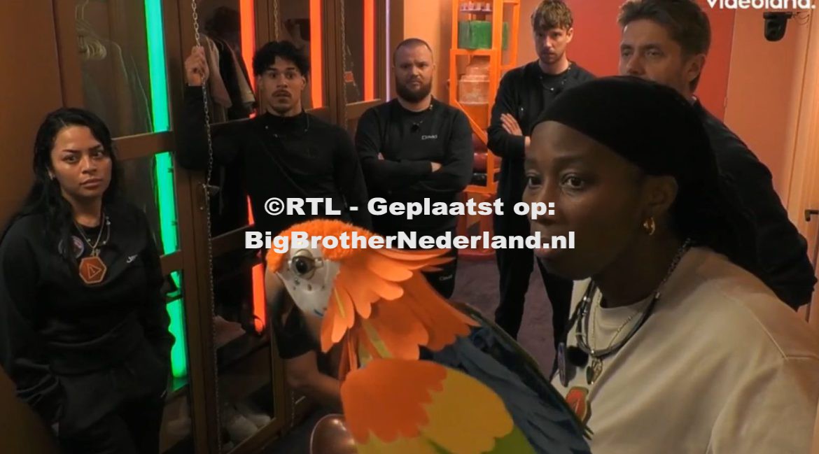 In dit seizoen van Big Brother is er een papegaai. De papegaai kondigt soms belangrijke gebeurtenissen aan, maar vanmiddag heeft hij de bewoners wat anders laten horen. Iets wat voor opschudding zorgt in het huis.