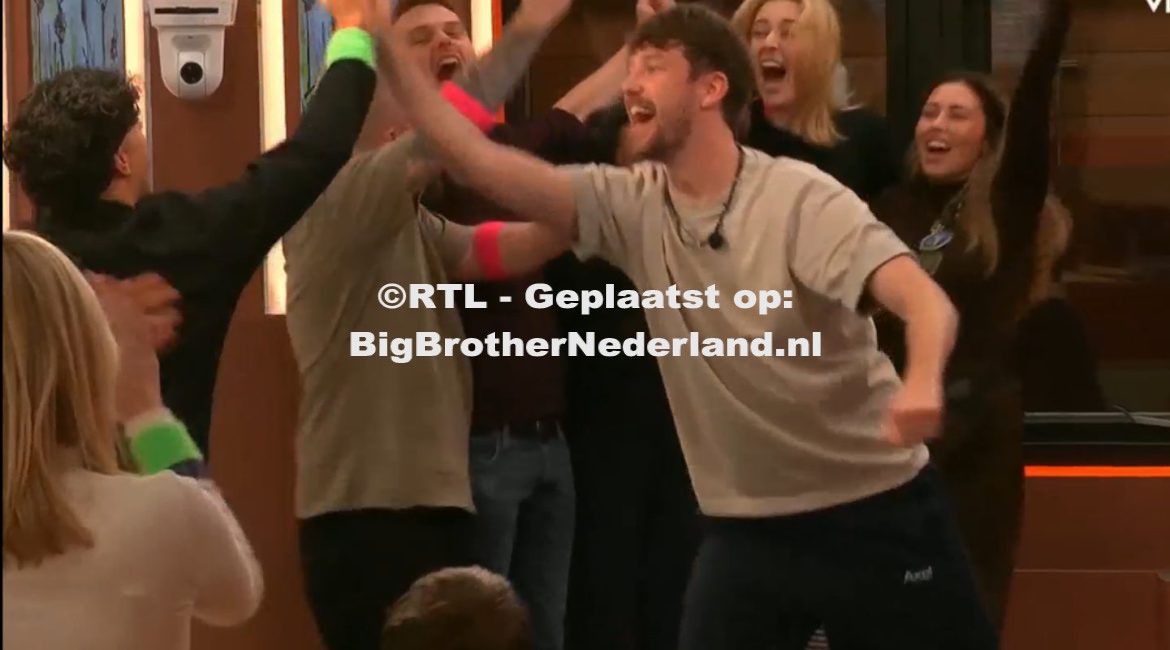 Als iedereen er is neemt hij het woord. Bewoners, zoals gezegd het gaat deze week om drie games. En het team dat het snelst twee van de drie games heeft gewonnen is de winnaar. Dat team wint als team 15.000 euro. Van het verliezende team krijgt iedereen een nominatie target. Tot jullie aan het vorige spel begonnen was het 1-0 voor team groen. Dat betekent dat als team groen dit spel gewonnen heeft het nu 2-0 is en daarmee beslist is dat team groen de competitie heeft gewonnen en daarmee 15.000 euro. Als team roze dit spel heeft gewonnen is het nu 1-1 en dat betekent dat het derde spel cruciaal is. Het verschil in uitslag bij dit spel was zeer groot. Een verschil van bijna 40 minuten. De winnaar van dit spel is team roze! De groep juicht het uit van vreugde. Het staat dus 1-1 en het volgende spel wordt cruciaal!