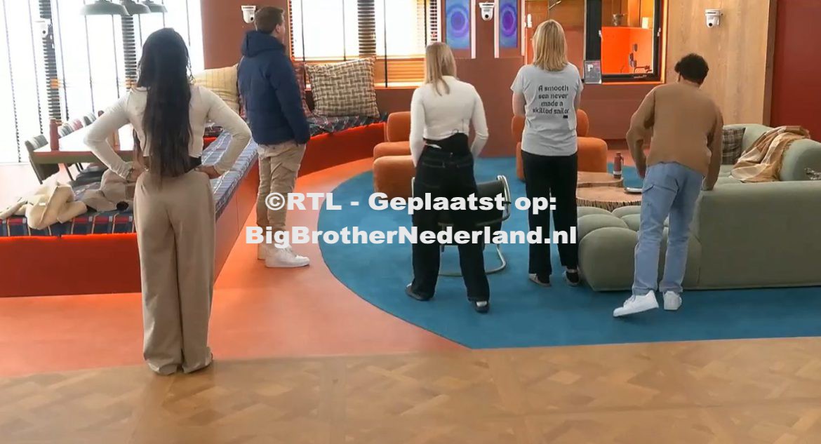 De schermen in de woonkamer gaan aan en de bewoners wachten af. De eerste bewoner die op het scherm verschijnt is Jane. De tweede bewoner die op het scherm verschijnt is Sharice. De laatste bewoner die verschijnt is Mattheüs. Dit betekent dat Jane, Sharice en Mattheüs dus genomineerd zijn. Jane vraagt zich af waarom er voor Mattheüs gekozen is. Mattheüs laat weten dat hij gekozen heeft om op de bank te willen. Was er gelijkspel vraagt Sharice. Jolien laat weten dat er een gelijkstand was en dat wij moesten kiezen. En wij moesten toen kiezen. Jordy snapt het niet, er kon geen gelijkspel zijn. Ja tussen jullie (Mattheüs en Jolien). Niet veel later klinkt de vending machine, de nominatie pins vallen binnen en worden opgedaan. Sharice feliciteert Jolien, ze staat sowieso in de finale week.
