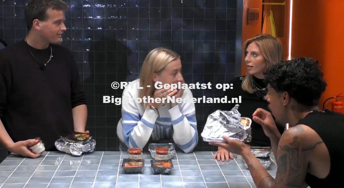 Terwijl de bewoners aan het eten zijn spreekt Big Brother zijn bewoners toe. Voor de laatste keer zitten jullie vanavond met zijn vieren aan tafel. Geniet nog even van elkaar, voor jullie het weten zijn jullie met drie. En omdat het de laatste keer is dat jullie samen eten trakteer ik. De bewoners bedanken Big Brother en eten hun kapsalon lekker op. Als er opgeruimd is gaan de meeste bewoners even op de slaapkamer liggen. Vanavond om 21:35 uur weten we welke bewoner nog moet vertrekken. Mocht je nog niet gestemd hebben op je favoriete bewoner kan dat nog steeds. Je stemt op jouw favoriete bewoner die jij in de finale wilt zien: